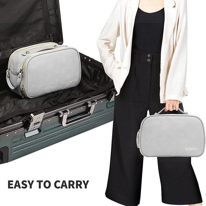 แสงสูง: | กระเป๋าใส่เครื่องแป้งสีเทาอ่อน,กระเป๋าใส่เครื่องแป้งสตรี,กระเป๋าแต่งหน้า OEM |